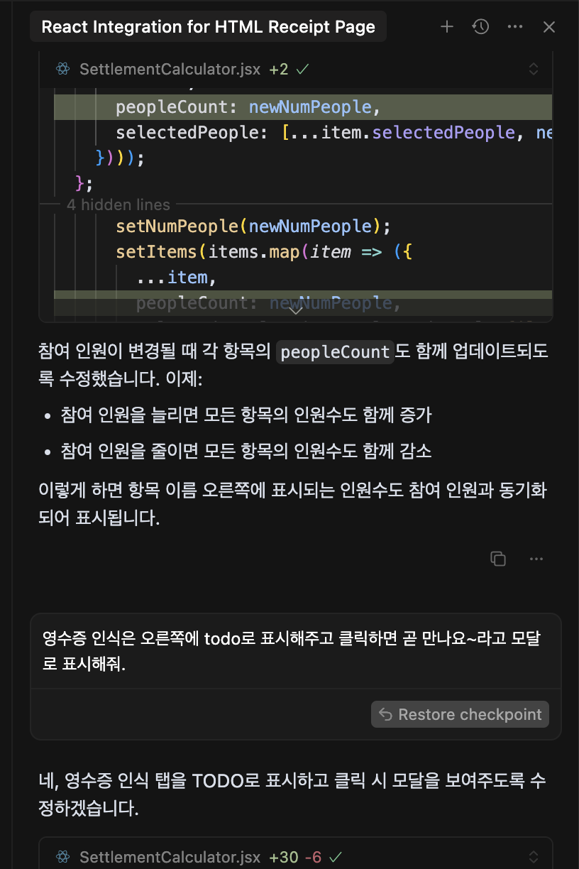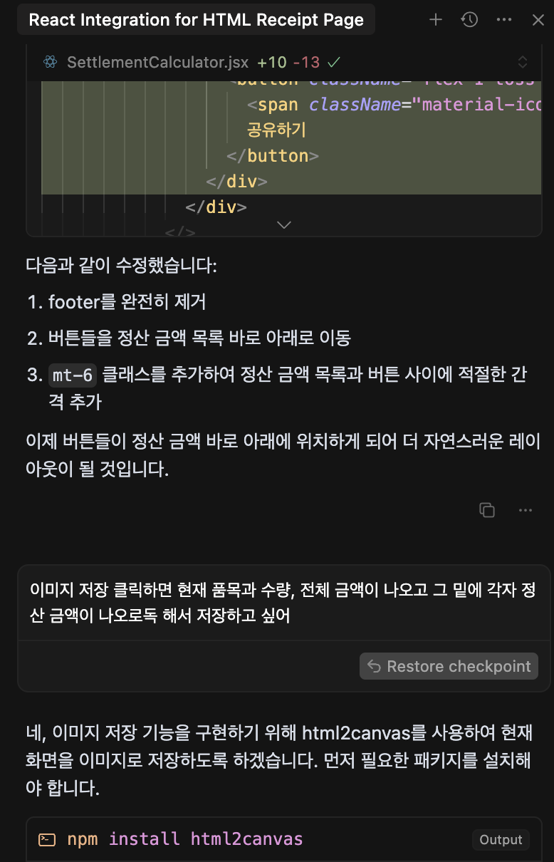 1. 내가 복사한 code를 기반으로 react에 맞춰서 만들어 달라고 하기